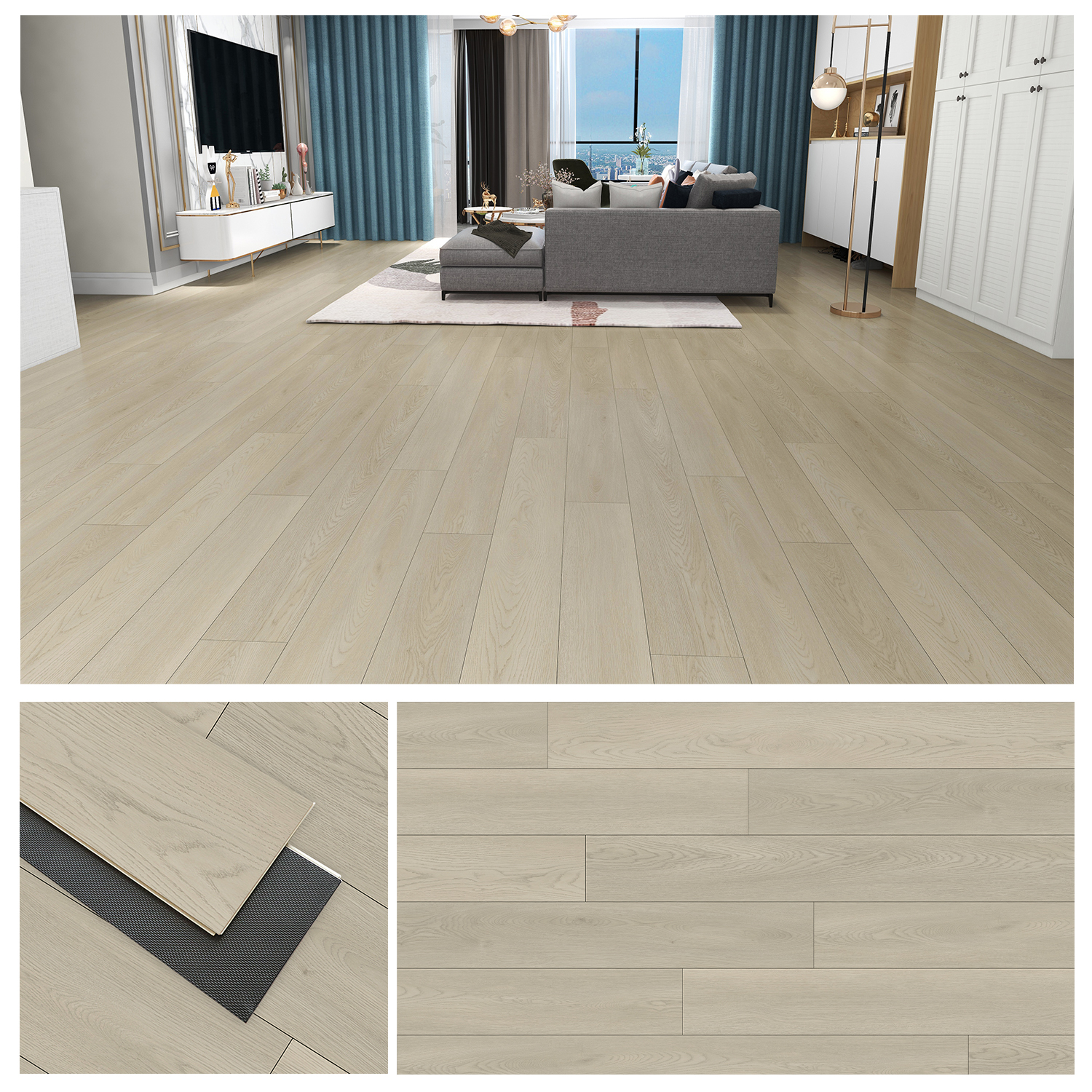 SPC floor is also waterproof,fire-proof,anti-slip high flexibility,sound and noise-proof and high temperature (80 degrees)low temperature (-20 degrees) and other characteristics.