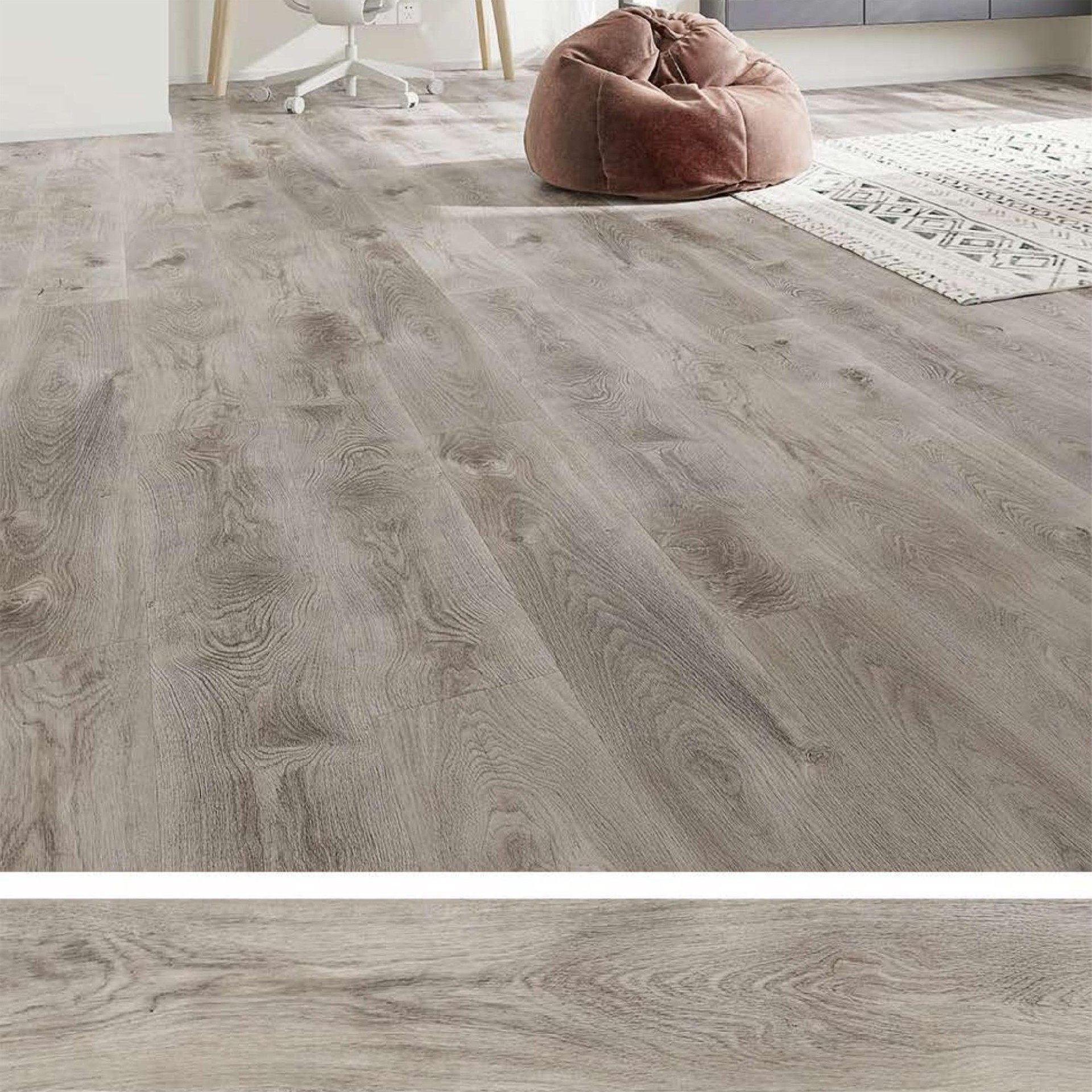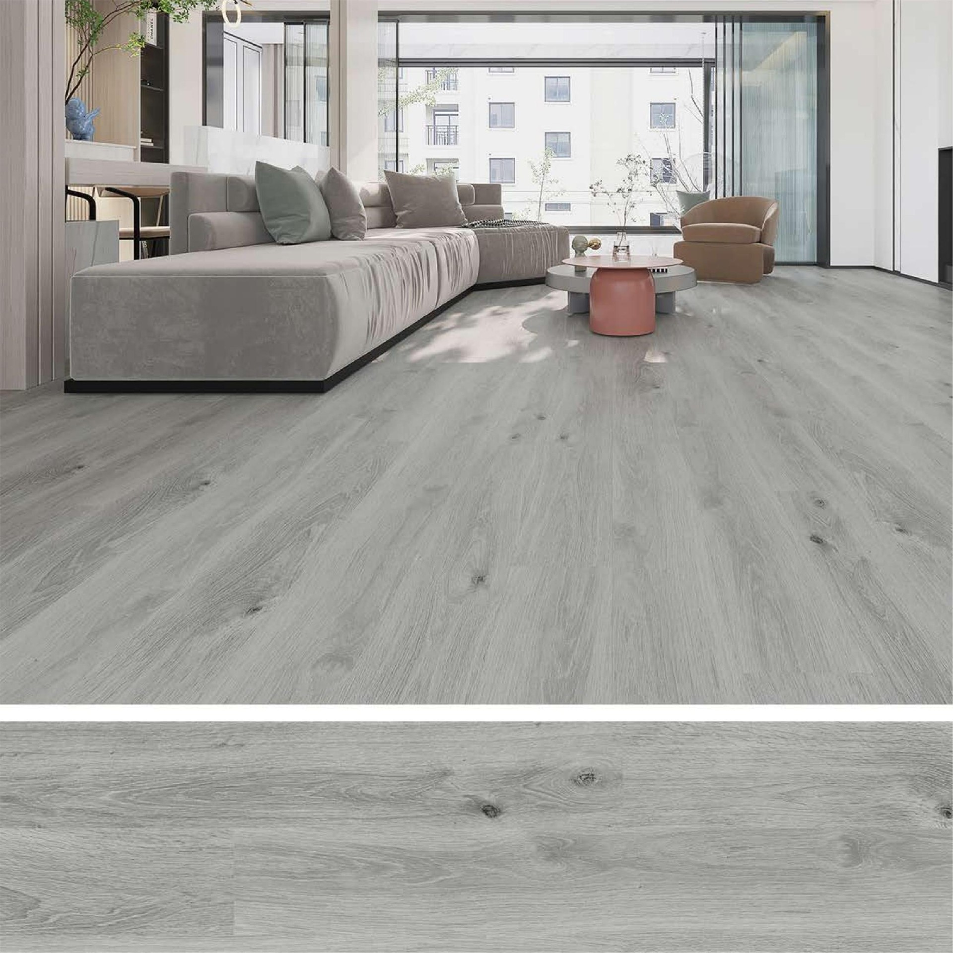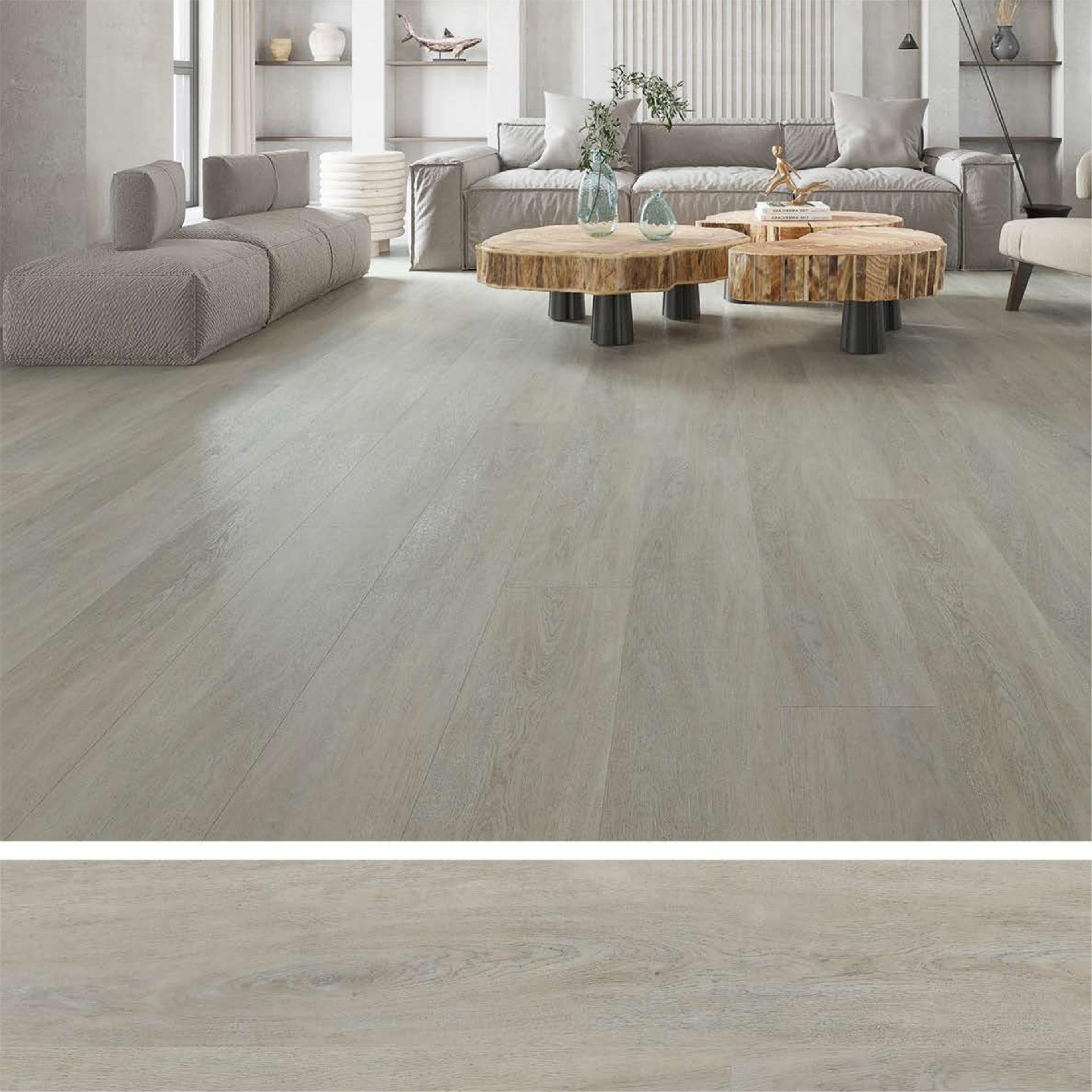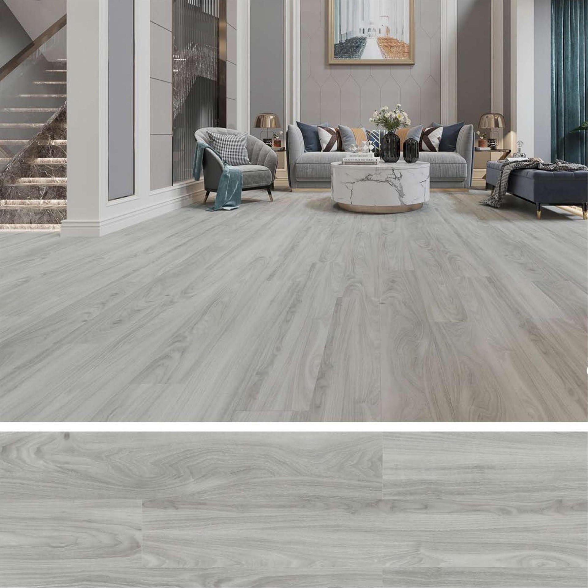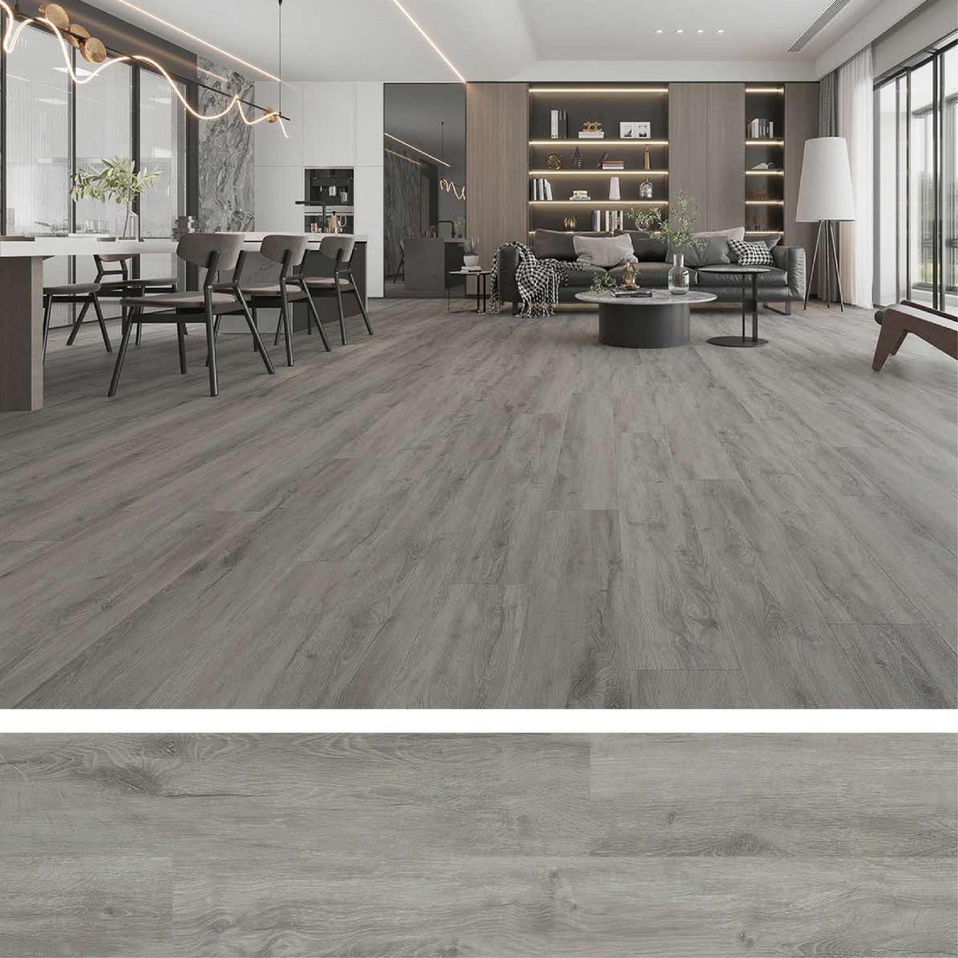 SPC floor is also waterproof,fire-proof,anti-slip high flexibility,sound and noise-proof and high temperature (80 degrees)low temperature (-20 degrees) and other characteristics.
